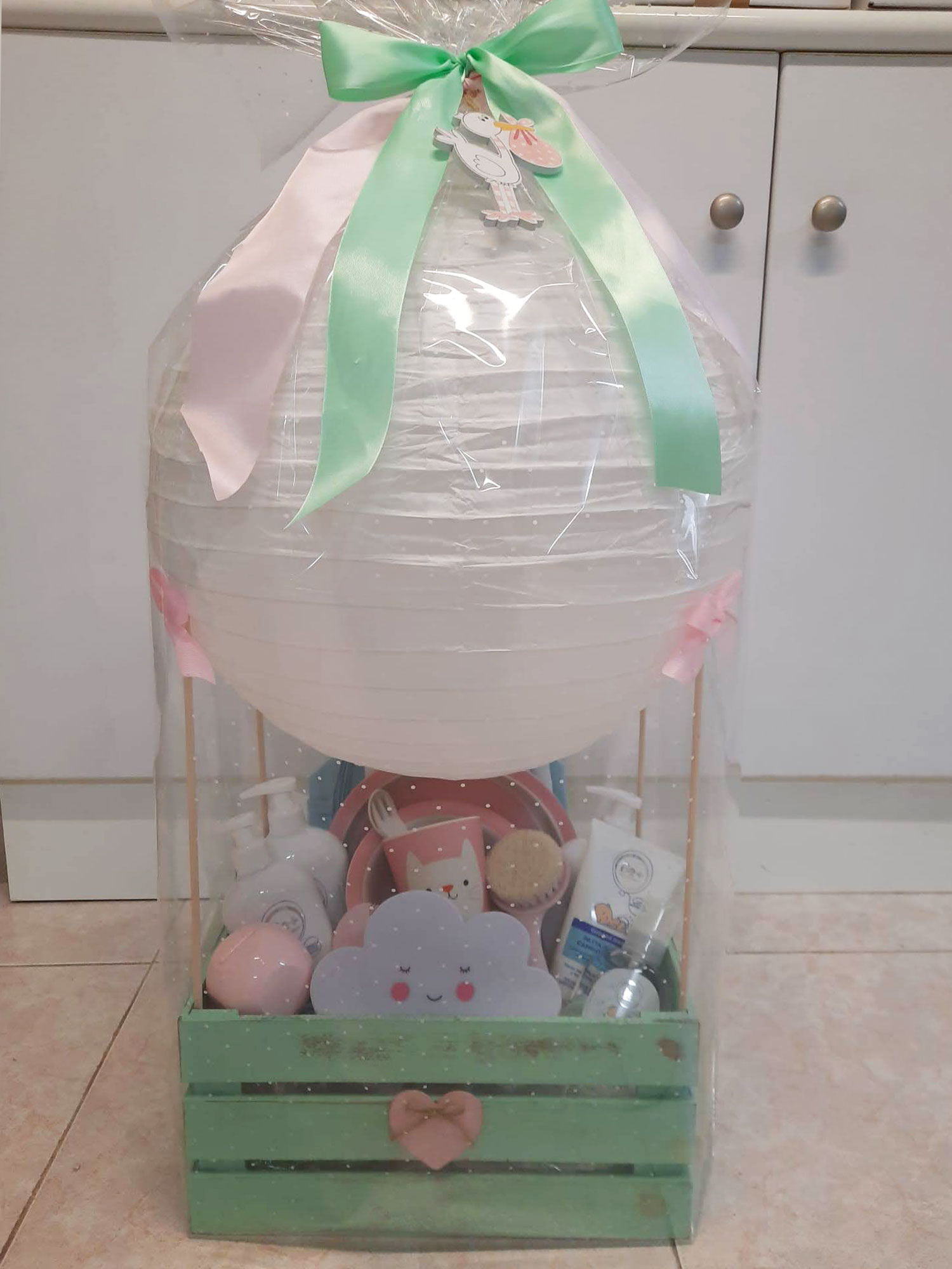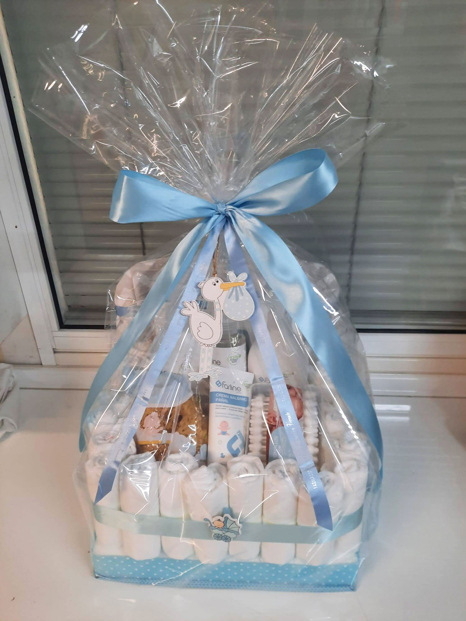 Disponemos de cajas personalizadas (con o sin globo) y tartas de pañales. Ambas opciones son personalizables con productos y detalles según tus preferencias.